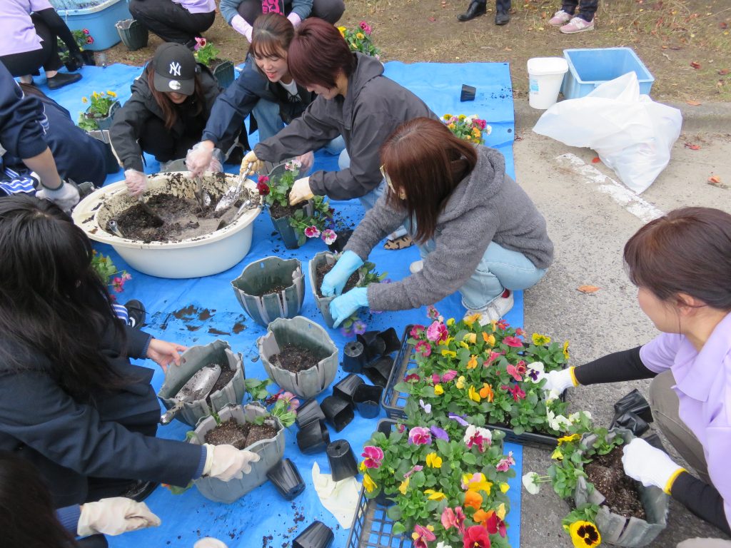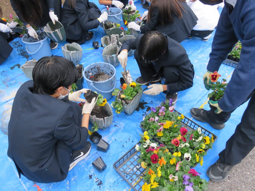 PTA/お知らせ/学校生活 ハンギングバスケット作りを行いました! 2025年11月6日 11月5日(水)の授業後、PTA広報委員の皆さまを中心にPTA役員、園芸部・ボランティア部の部員、関係教職員でハンギングバスケット作りを行いました。 雲も多く肌寒い中ではありましたが、参加者同士で協力し合いながら、一つ一つ丁寧にパンジーを植え、碧高フェンスを鮮やかに彩ることができました。