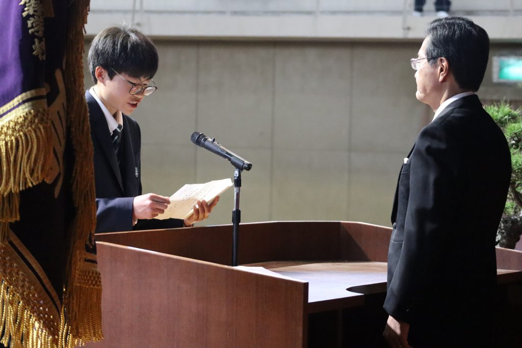 校長、PTA副会長からの祝辞では、校訓である「啓」についてのお話がありました。自らの手で才能を啓いていけるよう、努力してくれることを期待しています。