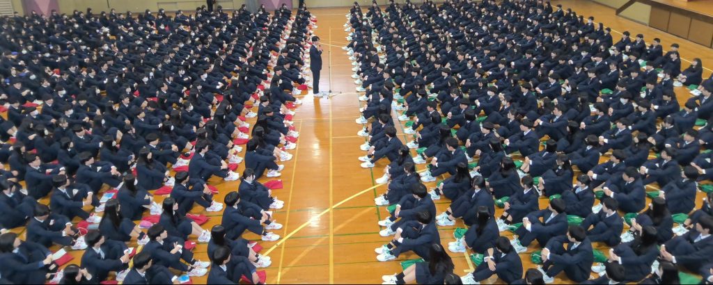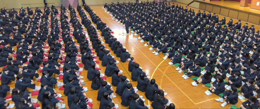 校長先生、3年生学年主任、生徒指導主事からのお話があり、1年を振り返るとともに、次年度に向けて自分の行動を見つめなおすきっかけになったと思います。