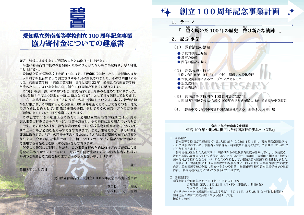 「碧高100年~碧南国民学校から碧南高校へ~展(仮称)」