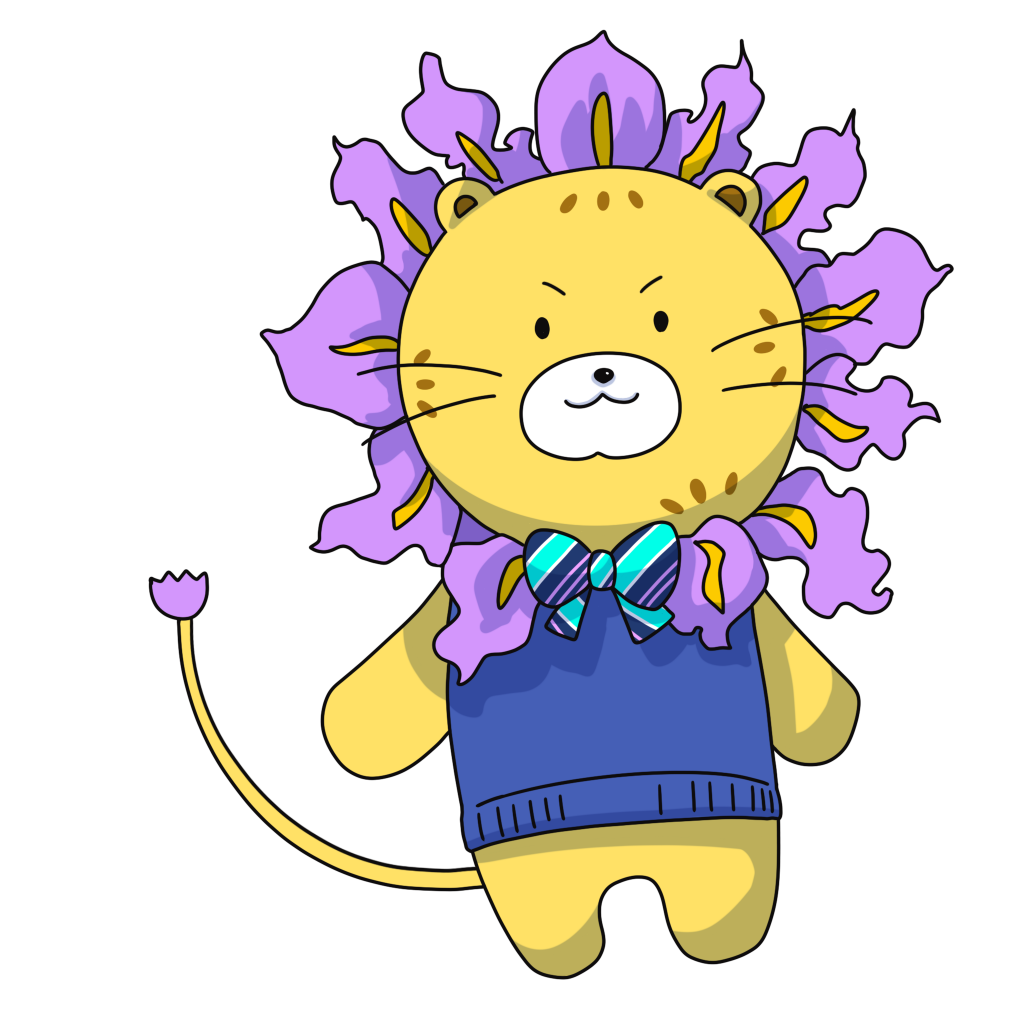 ライオンは「百獣の王」といわれてるので100周年の100と同じだなと思ってライオンにしました。たてがみを花しょうぶにして、碧南を主張しました。碧南のベスト(セーター)とリボンを身に付けています。
